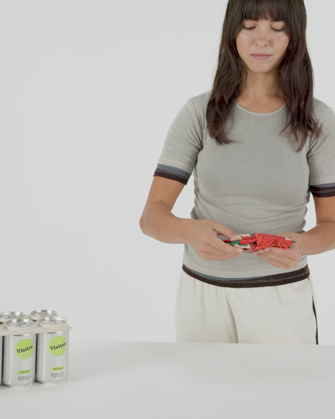 A smaller version of our original reusable shopping bag. Perfect for your lunch, a six pack, extra shoes, or a trip to the corner store. This item has updated packaging with a new pouch loop! Paper sleeves are no longer perforated for hanging.